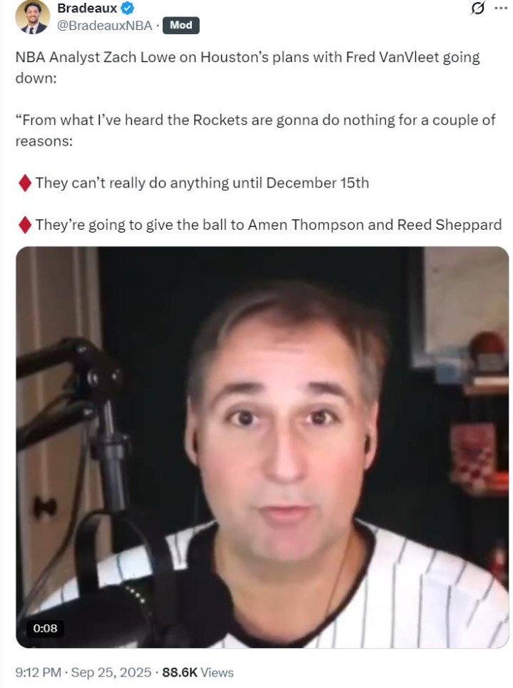 ESPN数据分析师扎克-洛维谈到了范弗利特赛季报销后火箭的动向,1.火箭队在12月15日之前不会有任何的运作。(一方面是硬帽,一方面火箭认为阵容足够强大)