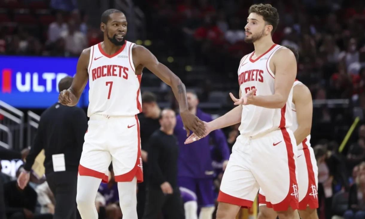 火箭首发:杜兰特、史密斯、申京、阿门、奥科吉。