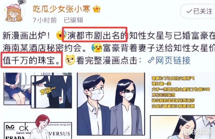 近年,网络上突然流传出一组匿名漫画,内容直指一位 “高学历女星与已婚富豪隐婚、海外产子”,尽管未指名道姓,但漫画中 “中戏毕业、留学经历、演艺轨迹” 等细节与江疏影高度重合,让她瞬间被推上风口浪尖。更有网友牵强附会,将 “富豪” 指向已婚企业家于冬 —— 其妻子是曾出演《西游记》孔雀公主的金巧巧,这一关联让江疏影遭遇严重的人品质疑,“插足他人婚姻”“拜金” 等恶意揣测在网络蔓延。